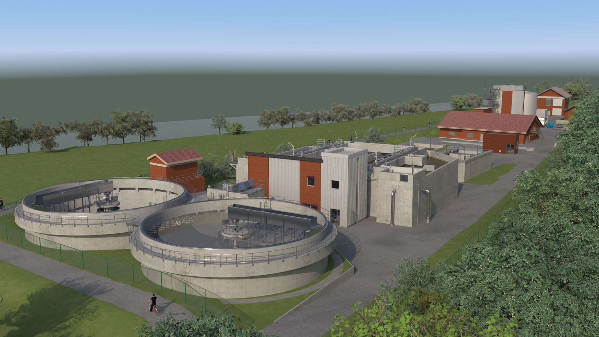 • Neubau 2 Stück runde Nachklärbecken, Durchmesser 20 m, Rücklaufschlammpumpwerk